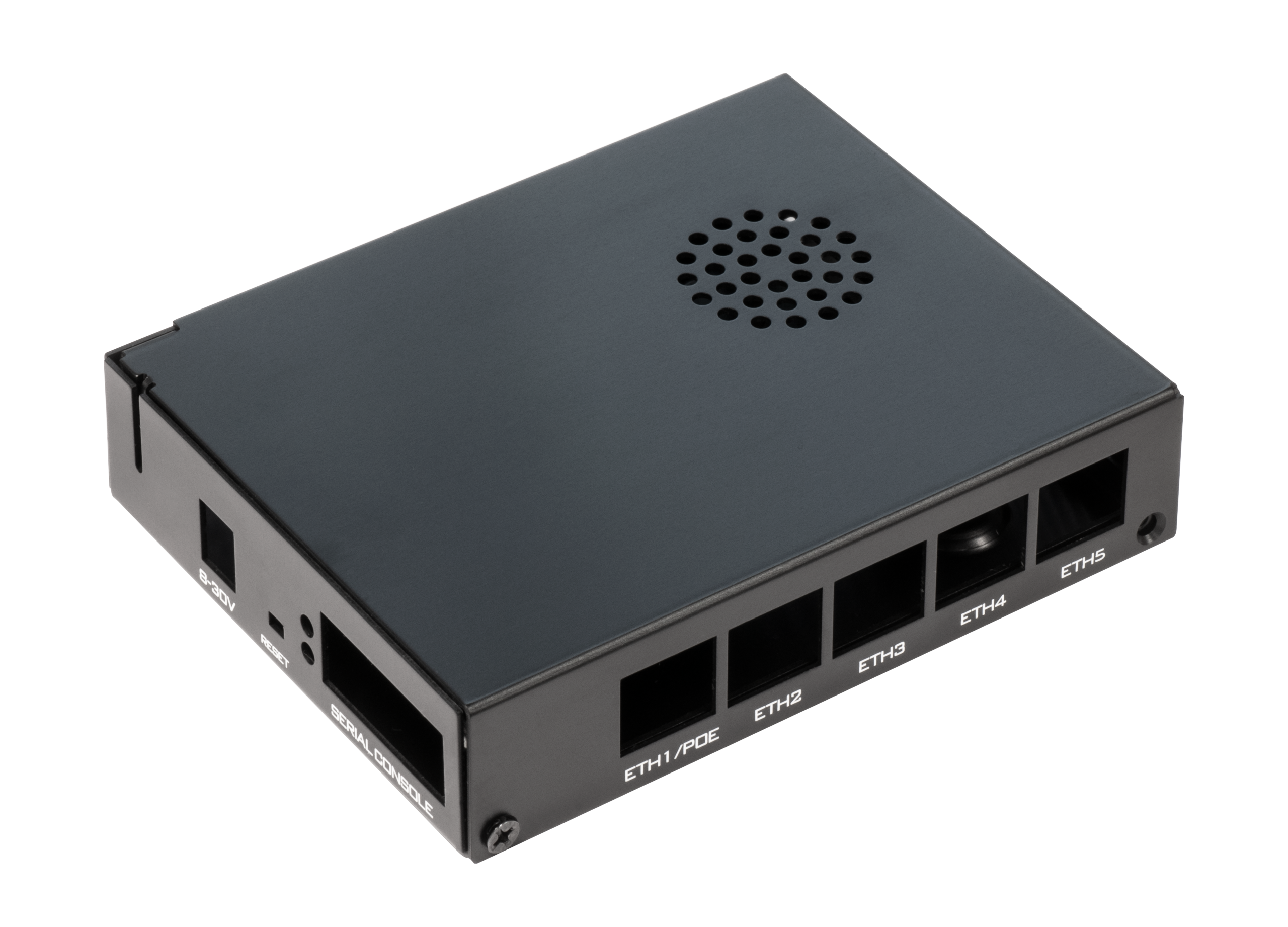 Branded with MikroTik RouterBOARD logo Aluminum Casing Black gloss finish