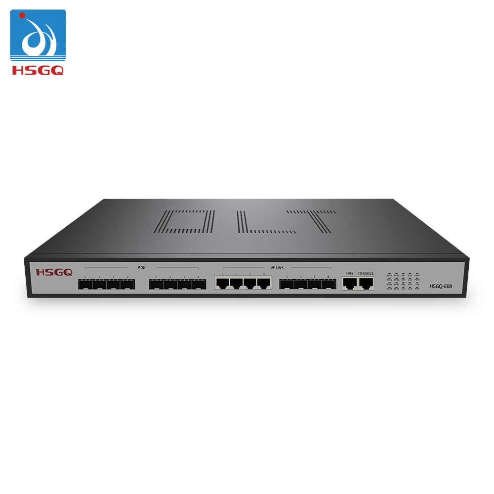 HSGQ-E08 series GPON OLT products are 1U height 19 inch rack mount products. The features of the OLT are small, convenient, flexible, easy to deploy, high performance. It is appropriate to be deployed in compact room environment. The OLTs can be used for “Triple-Play”, VPN, IP Camera, Enterprise LAN and ICT applications.